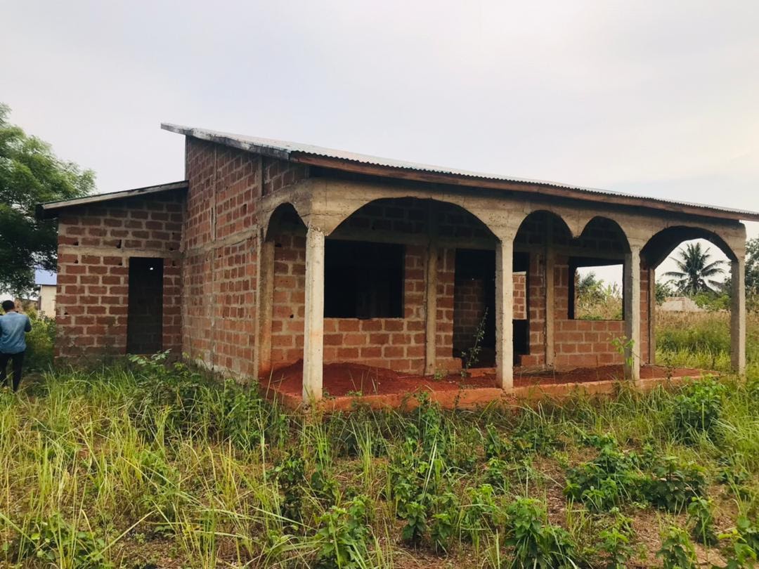 👉🏽 La maison comporte pour l'instant Un grand salon; deux chambres à coucher ; Une cuisine, Une salle de repos, un puits.